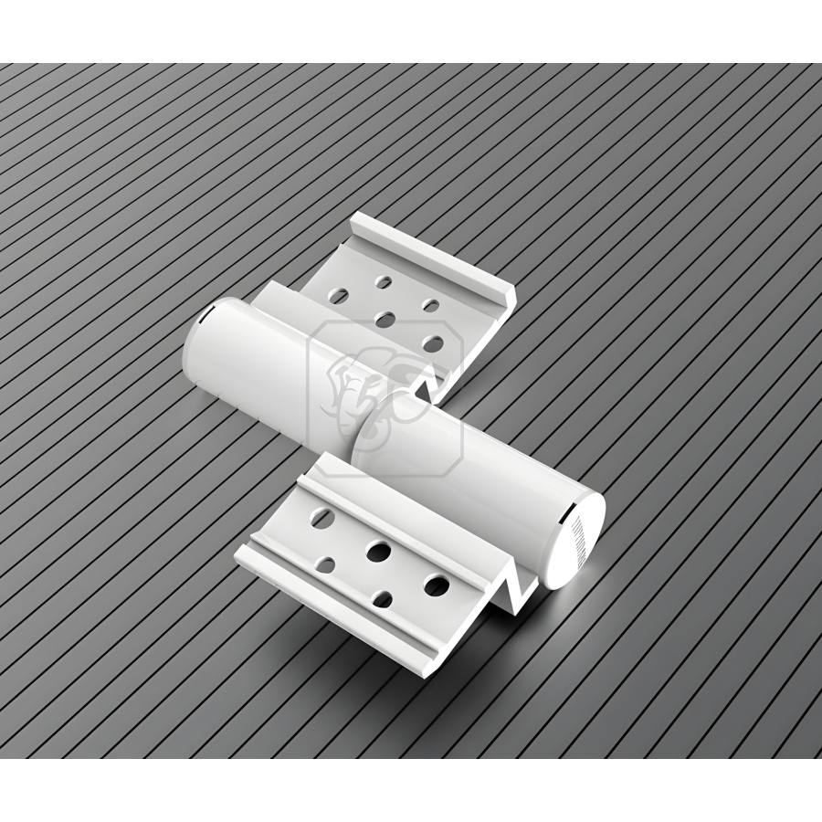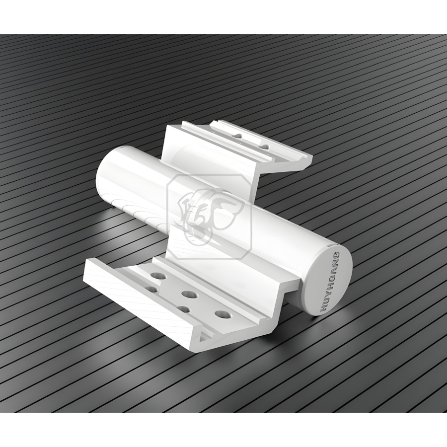 Bản lề 2D dài Huy Hoàng: Hợp kim Nhôm 6063-T5, Sơn Trắng. Cối Ø24mm, chốt Inox, chịu lực tốt. Dùng cho cửa nhôm Hệ 55/Xingfa 4 cánh, bền màu, giá tốt.
