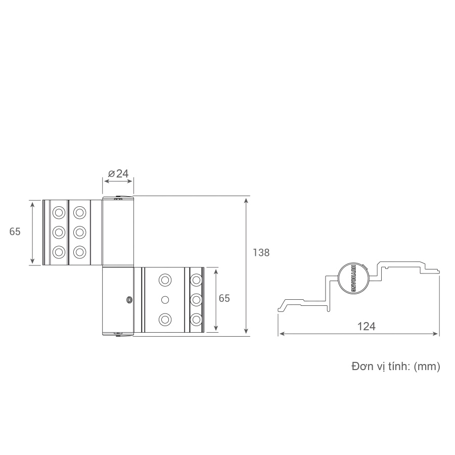 Bản vẽ Bản lề Huy Hoàng 2D dài 2 cánh hệ xingfa Điện Zi Titan