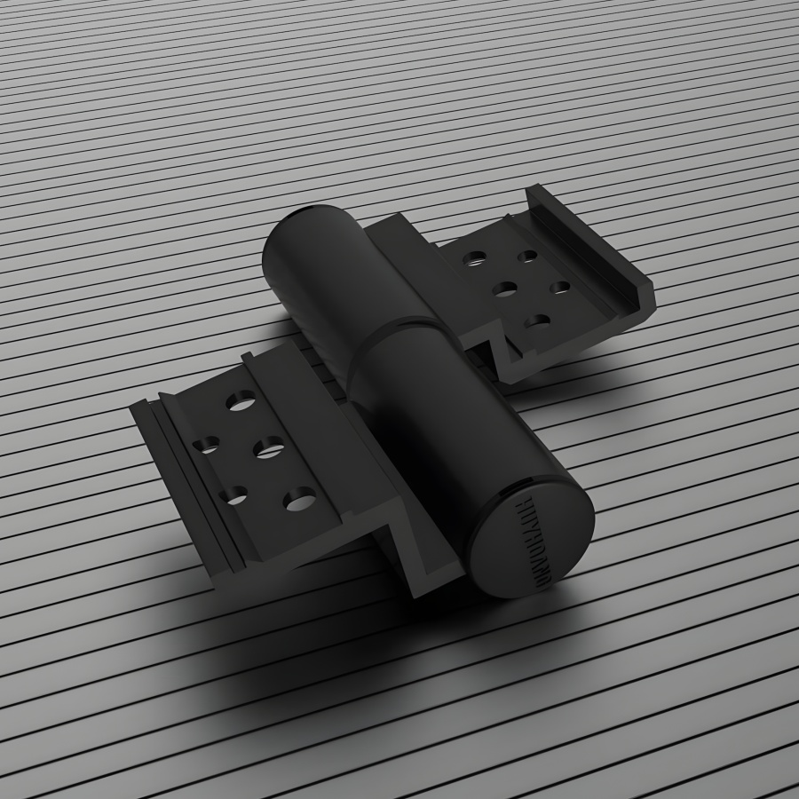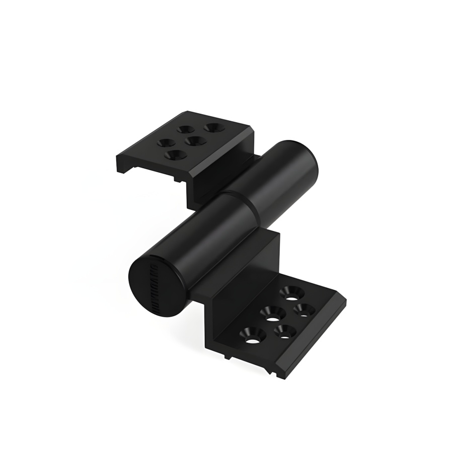 Chất liệu & Độ cứng vượt trội: Bản lề được làm từ nguyên liệu chính là nhôm 6063-T5, nổi tiếng về độ bền. Các chi tiết được nâng cấp, tăng kích thước của cối bản lề, và có gân tăng cứng để tăng cường độ cứng vững.