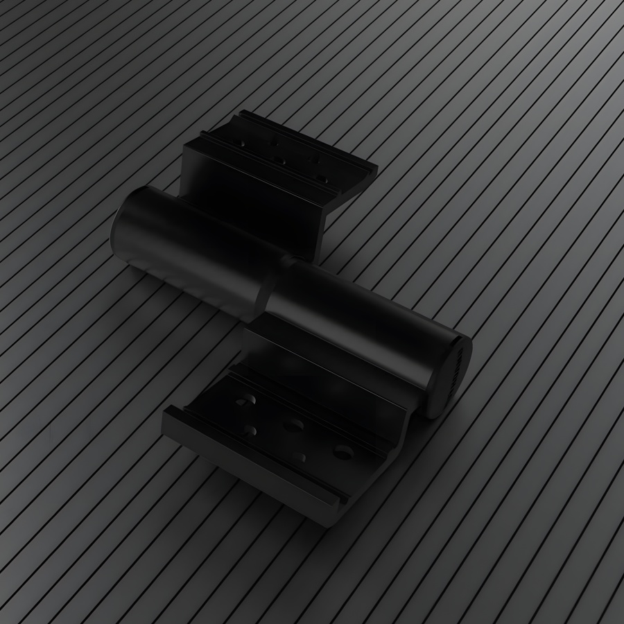 Bản lề 2D dài Huy Hoàng Hệ 55: Hợp kim Nhôm 6063-T5, Sơn Đen. Cối Ø24mm, chốt Inox, chịu lực tốt. Dùng cho cửa nhôm Hệ 55, bền màu, giá tốt.