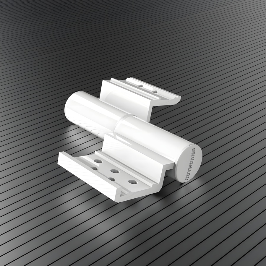 Thiết kế Tăng cứng: Trên bản lề có các gân tăng cứng, cộng với các điểm móc trực tiếp bản lề vào thanh nhôm đảm bảo độ chắc chắn khi lắp vào cửa.