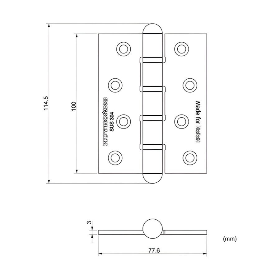 Bản vẽ Bản Lề Lá HeleH Inox 304 02