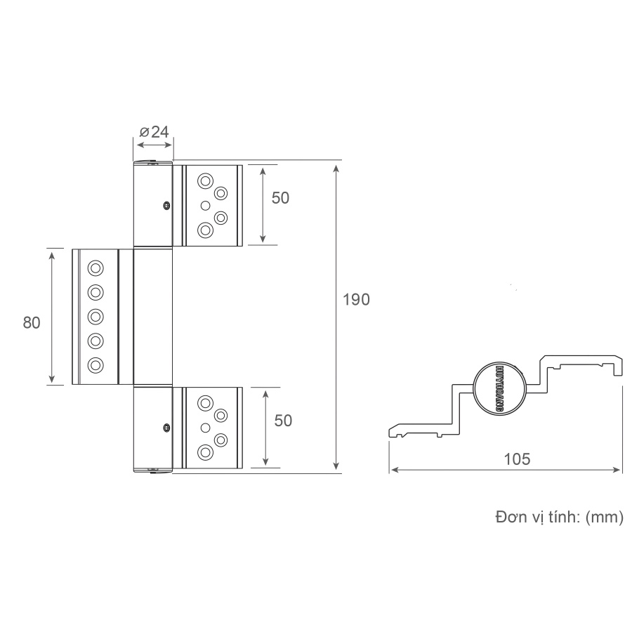 Chất liệu: Nhôm 6063-T5 (Nguyên liệu chính), Inox (Chốt bản lề).
