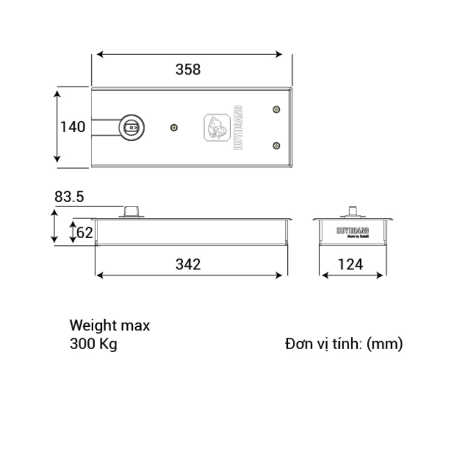 Chịu tải Cực lớn: Bản lề có khả năng chịu tải lên đến 300kg, phù hợp với các cánh cửa rất lớn và nặng, với chiều rộng tối đa 1500mm.