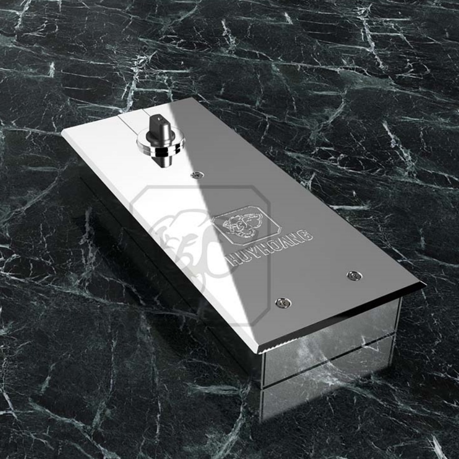Bản lề sàn Huy Hoàng SS 05 (Tải 300kg): Hộp Inox 304. Đóng mở 2 chiều, điều chỉnh tốc độ, góc định vị 90°/125°. Lý tưởng cho cửa kính cường lực/cửa gỗ...