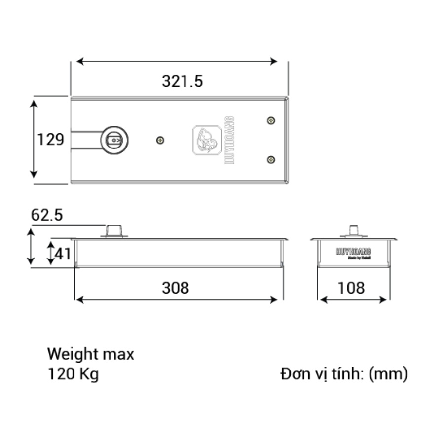 Bản vẽ Bản Lề Sàn Huy Hoàng SS 02 Vàng – Chịu Tải 120kg, Góc Mở 125 Độ