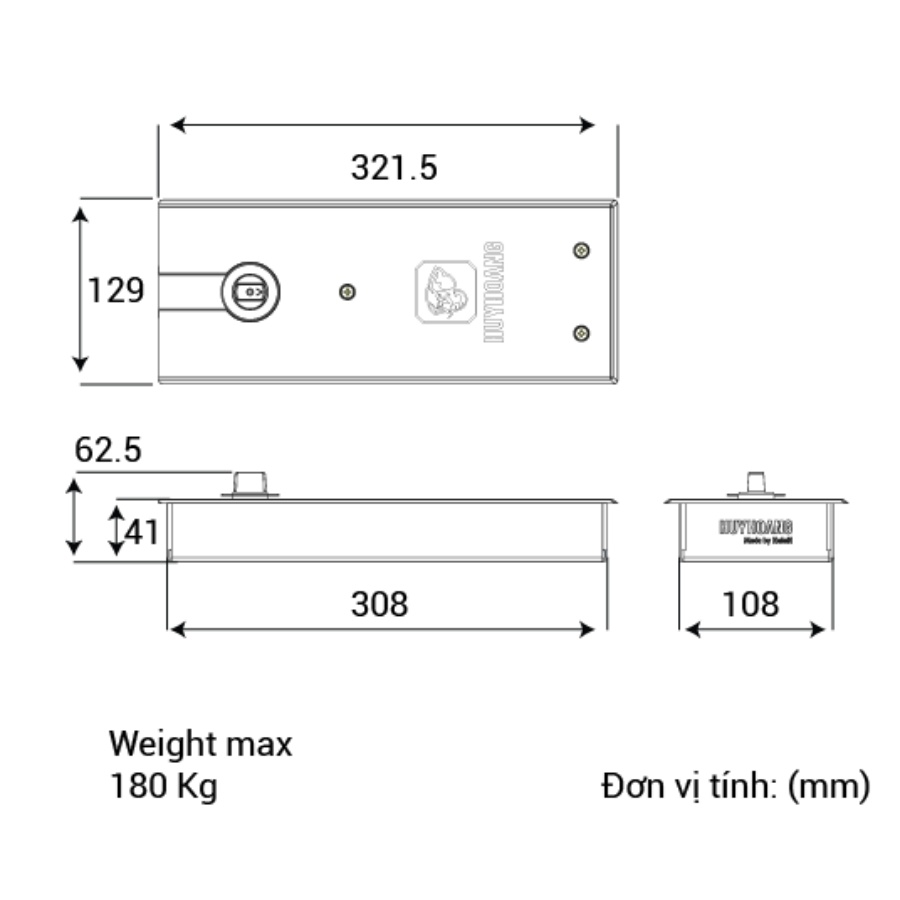 Chịu tải Rất lớn: Bản lề có khả năng chịu tải lên đến 180kg, phù hợp với các cánh cửa lớn và nặng, với chiều rộng tối đa 1350mm.