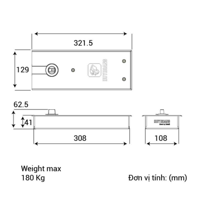 Chịu tải Rất lớn: Bản lề có khả năng chịu tải lên đến 180kg, phù hợp với các cánh cửa lớn và nặng, với chiều rộng tối đa 1350mm.