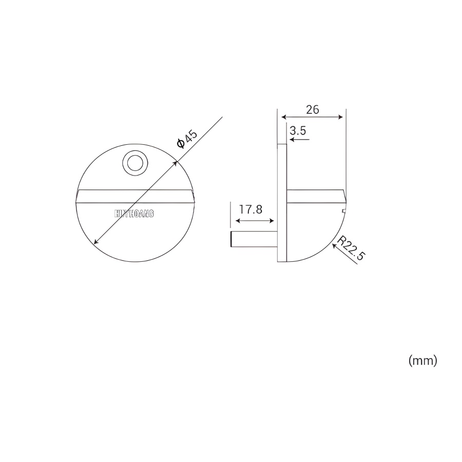 Bản vẽ Chặn Cửa Bán Nguyệt Huy Hoàng DSSS03 – Inox 304 Mạ Đồng Đen, Lắp Sàn