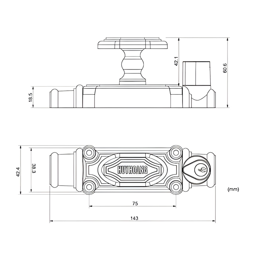 Bản vẽ Chốt cremone Huy Hoàng 06 điện Zi vàng