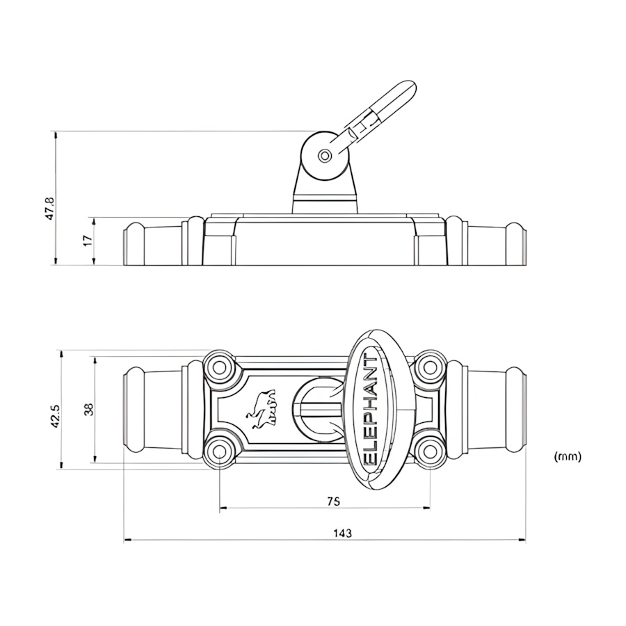 Bản vẽ Chốt cremone Huy Hoàng 08 Sơn Tím
