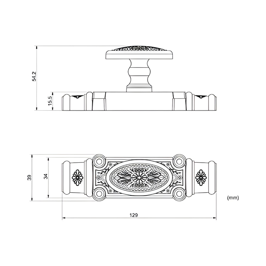 Chất liệu Hợp kim ZDC-2 & Điện Di Vàng: Tay vặn cremone EX 03-ZVA được sản xuất bằng hợp kim ZDC-2 (Hợp kim kẽm). Bề mặt được xử lý bằng công nghệ Điện Di Vàng (ZVA), tăng cường khả năng chống ăn mòn và mang lại vẻ ngoài sang trọng.