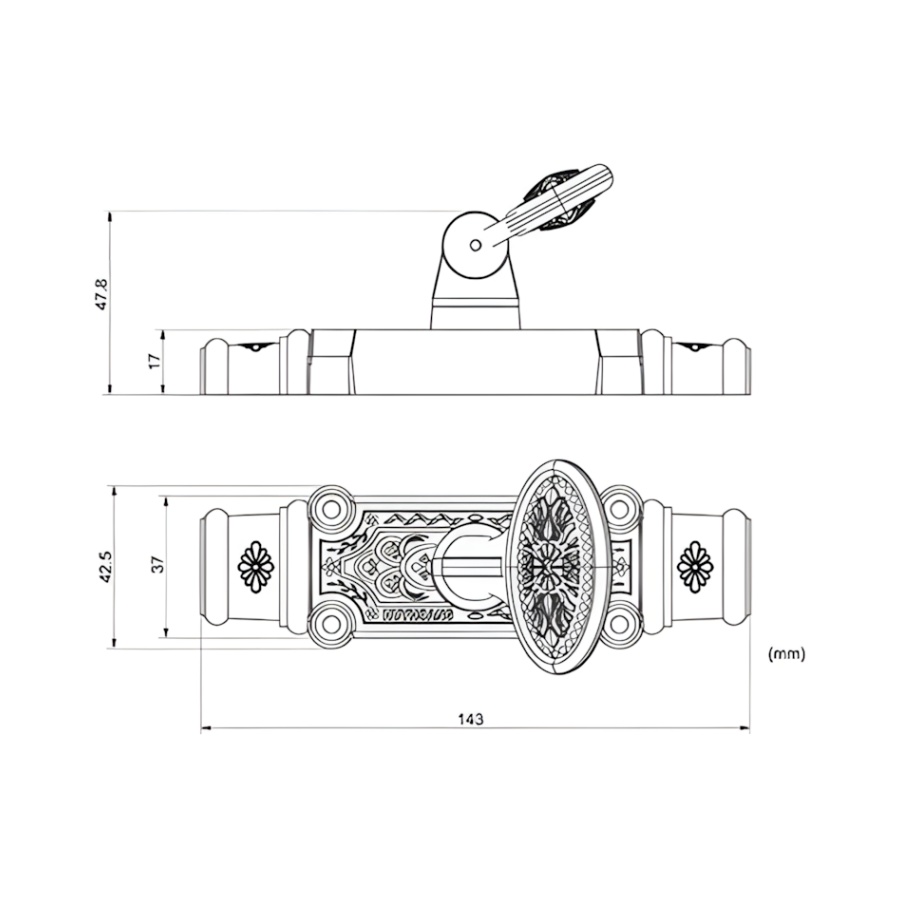 Chất liệu Đồng Thau Cao Cấp: Chốt cremone HC 08 được sản xuất bằng đồng vàng (đồng thau), đảm bảo khả năng chống oxy hóa, chống ăn mòn và tính thẩm mỹ cao, phù hợp với cửa gỗ cao cấp.