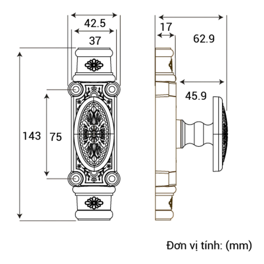 Chất liệu Đồng Thau Cao Cấp: Chốt cremone HCX 02 được sản xuất bằng đồng vàng (đồng thau), đảm bảo khả năng chống oxy hóa, chống ăn mòn và tính thẩm mỹ cao, phù hợp với cửa gỗ cao cấp.