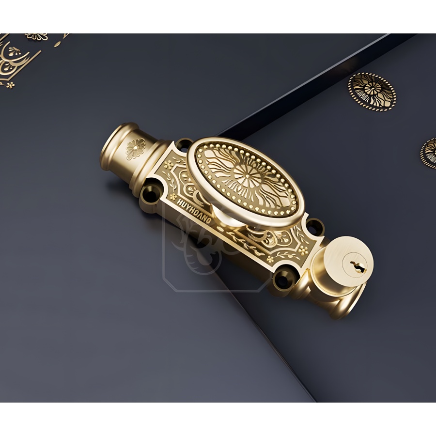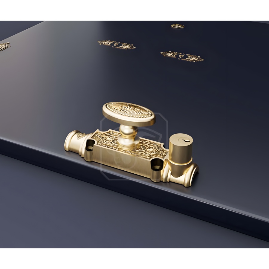 Chất liệu Đồng Thau Cao Cấp: Chốt cremone HCX 06 được sản xuất bằng đồng vàng (đồng thau), đảm bảo khả năng chống oxy hóa, chống ăn mòn và tính thẩm mỹ cao, phù hợp với cửa gỗ cao cấp.