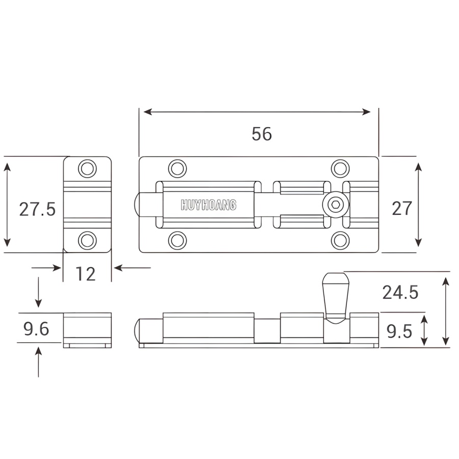Bản vẽ Chốt cửa Huy Hoàng 03 Sơn đen