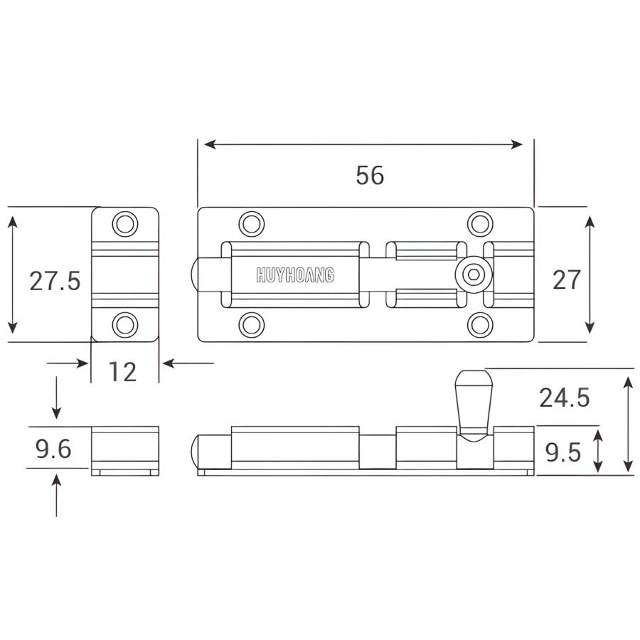 Chốt âm Huy Hoàng SS304 200: Inox 304, dài 200mm. Lắp đặt chìm vào cánh cửa phụ, chống gỉ sét. Đảm bảo an toàn, thẩm mỹ cao cho cửa gỗ/nhôm/sắt.