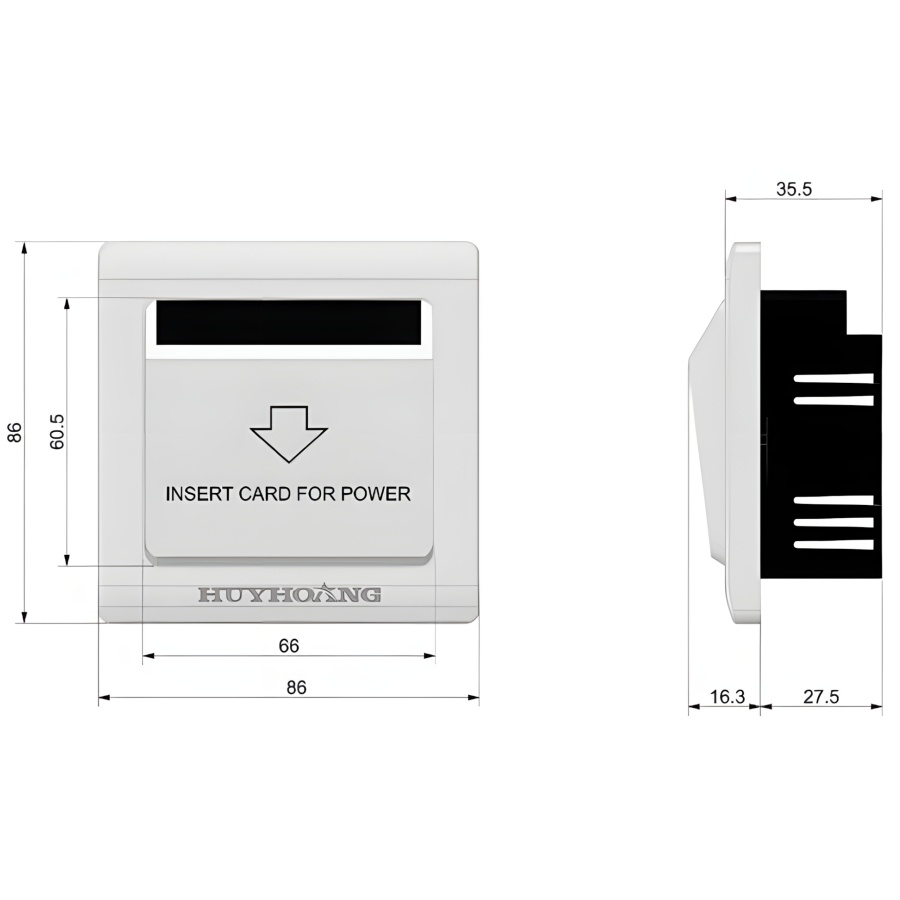 Tiết kiệm điện năng: Công tắc tự động ngắt điện (sau 10-15 giây) khi thẻ được rút ra khỏi khe cắm, ngăn chặn lãng phí điện năng khi khách rời khỏi phòng.