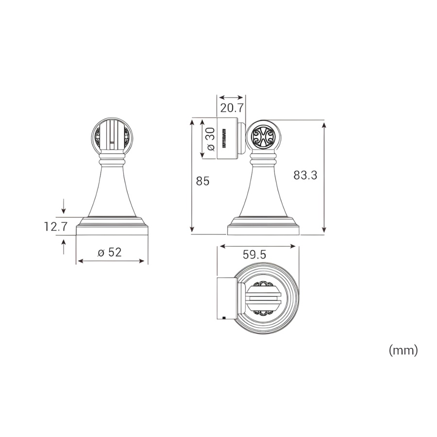 Bản vẽ Hít Cửa Huy Hoàng HCX 02 – Đồng Thau, Ngăn Cửa Đóng Sập