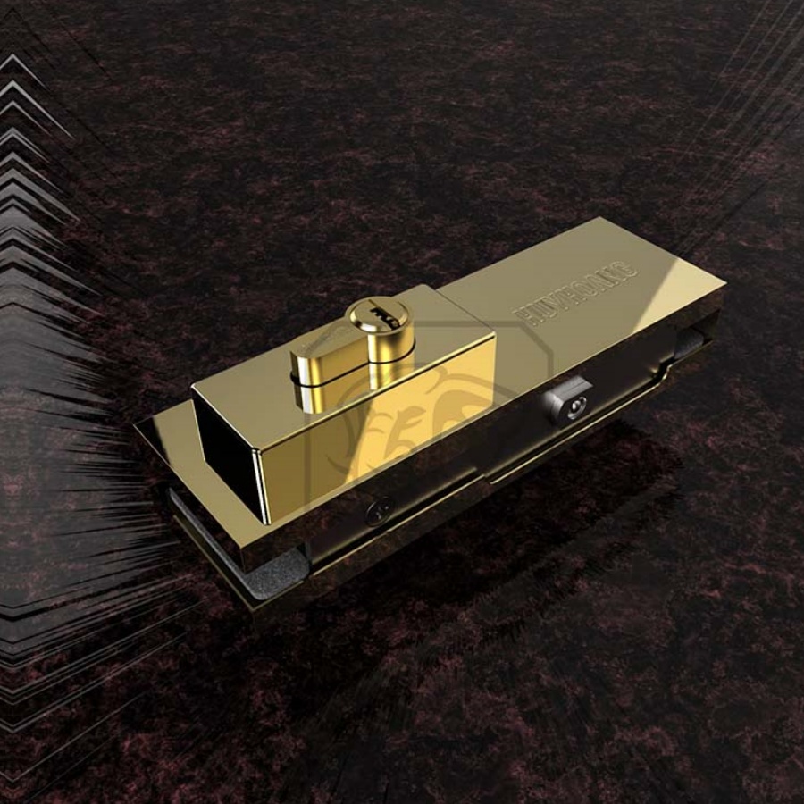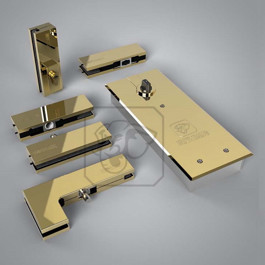 Kẹp Kính Khóa Huy Hoàng 05 (KK05V) – Inox 304 Mạ Vàng Cho Cửa Kính Thủy Lực