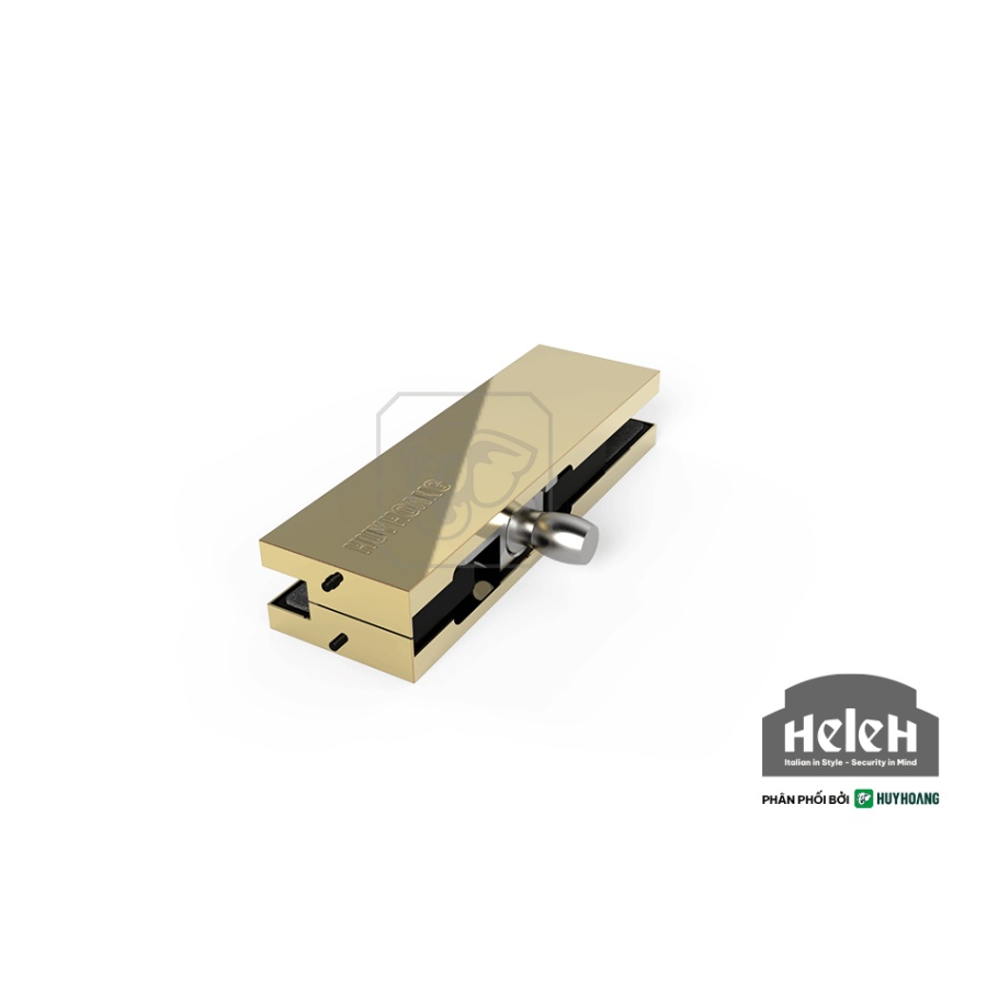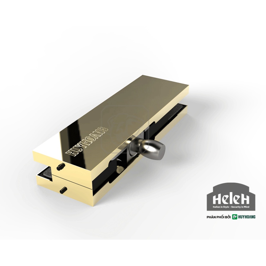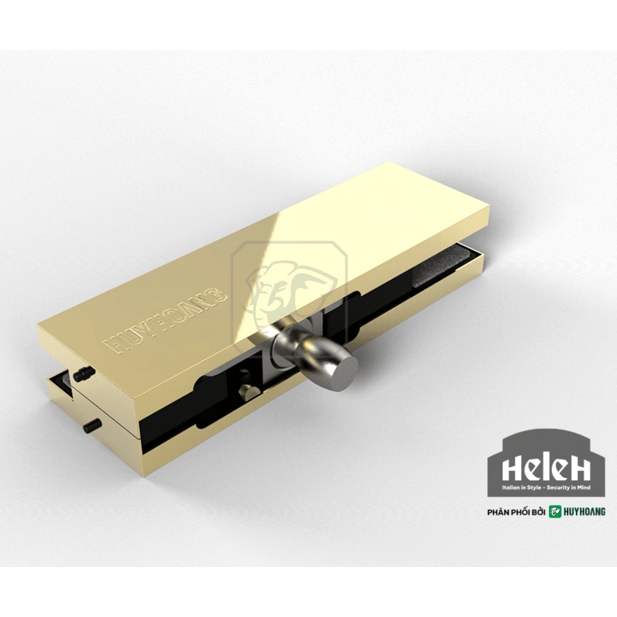 Kẹp kính dưới Huy Hoàng 01 Vàng: Inox 304 mạ Vàng. Dùng cho cửa kính (10-15mm), kết nối với bản lề sàn. Phụ kiện cường lực, chống gỉ, thẩm mỹ cao.