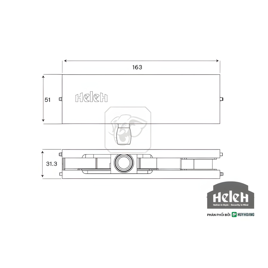 Phối hợp linh hoạt: Sản phẩm này dùng kết hợp với kẹp kính trên KK01V, là phụ kiện không thể thiếu trong hệ thống cửa kính trục xoay/thủy lực.