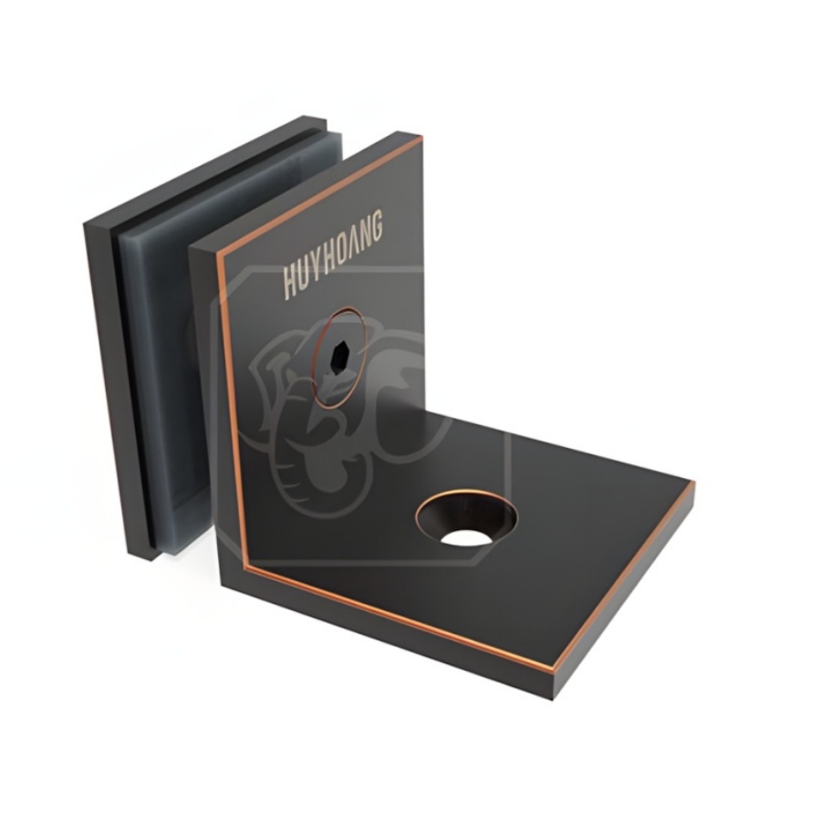 Kẹp vách 01 kính-tường Huy Hoàng: Inox 304 mạ Đồng Đen American. Cố định kính 8-12mm với tường (góc 90°). Bền bỉ, chống gỉ, cho phòng tắm kính.