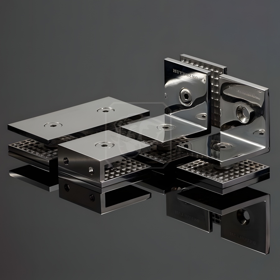 Bản lề kính-kính 135° Huy Hoàng: Inox 304 cao cấp, chống gỉ sét. Dùng cho kính 8-12mm, có chức năng tự đóng. Giải pháp bền bỉ cho cabin tắm kính.