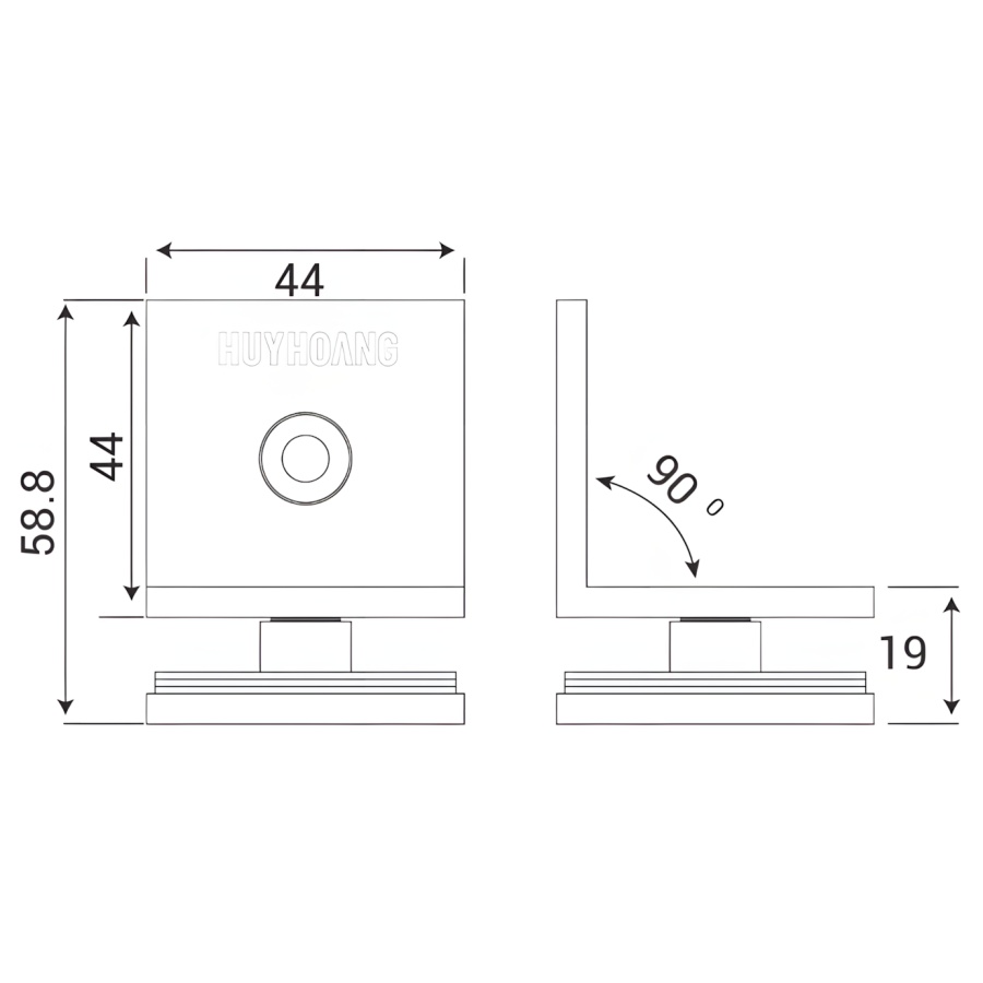 Kẹp vách kính gắn tường Huy Hoàng 90 độ KV02