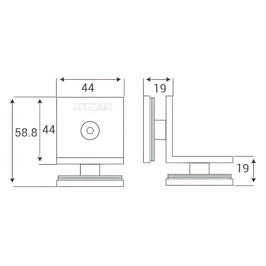 Kẹp vách kính gắn tường Huy Hoàng 90 độ KV02