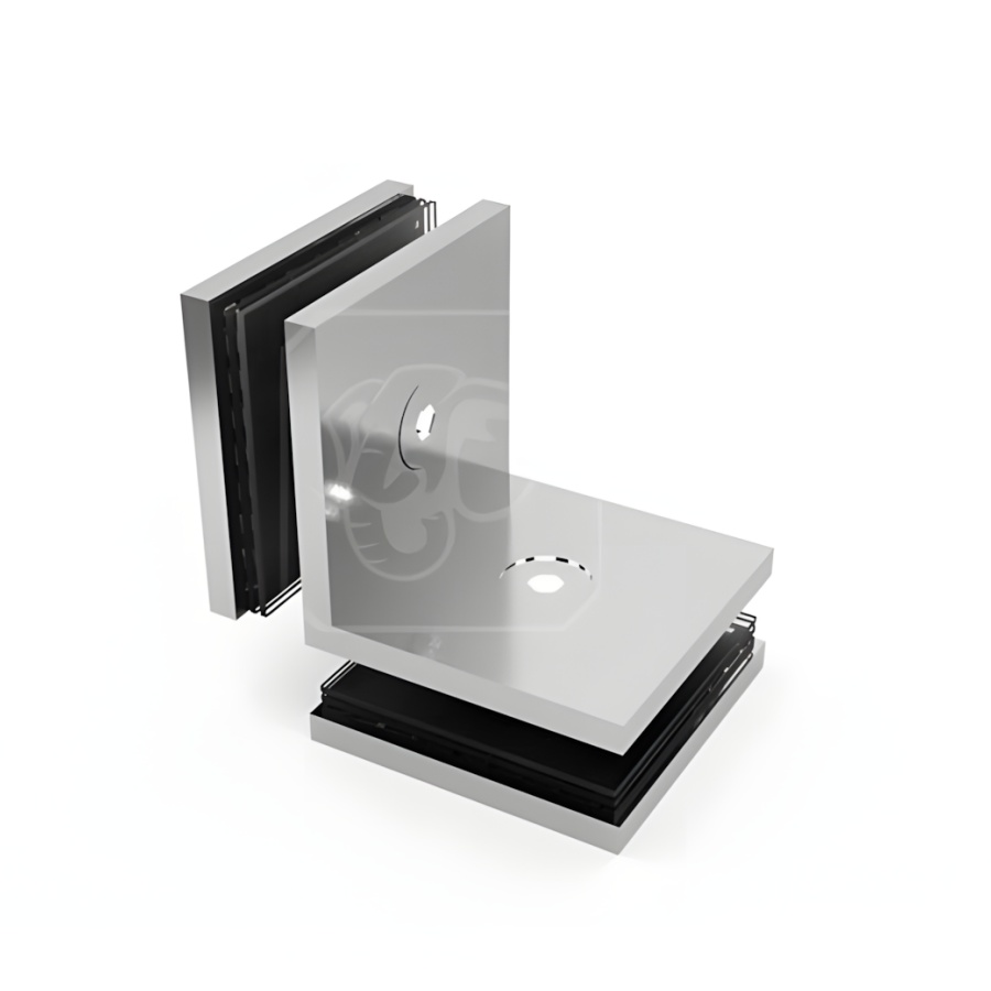 Thiết kế chuyên dụng 90 độ: Kẹp vách được sử dụng để cố định hai tấm kính cường lực ở góc 90 độ, đảm bảo sự chắc chắn và an toàn cho vách tắm kính (cabin tắm).