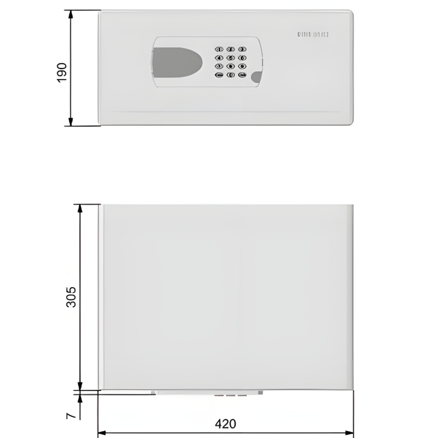 Thiết kế chuyên dụng & Bền bỉ: Két sắt được làm bằng thép sơn tĩnh điện màu đen, rất bền và an toàn. Kích thước nhỏ gọn (420 x 300 x 190 mm) và trọng lượng nhẹ (4kg) giúp dễ dàng lắp đặt vào tủ hoặc bàn.
