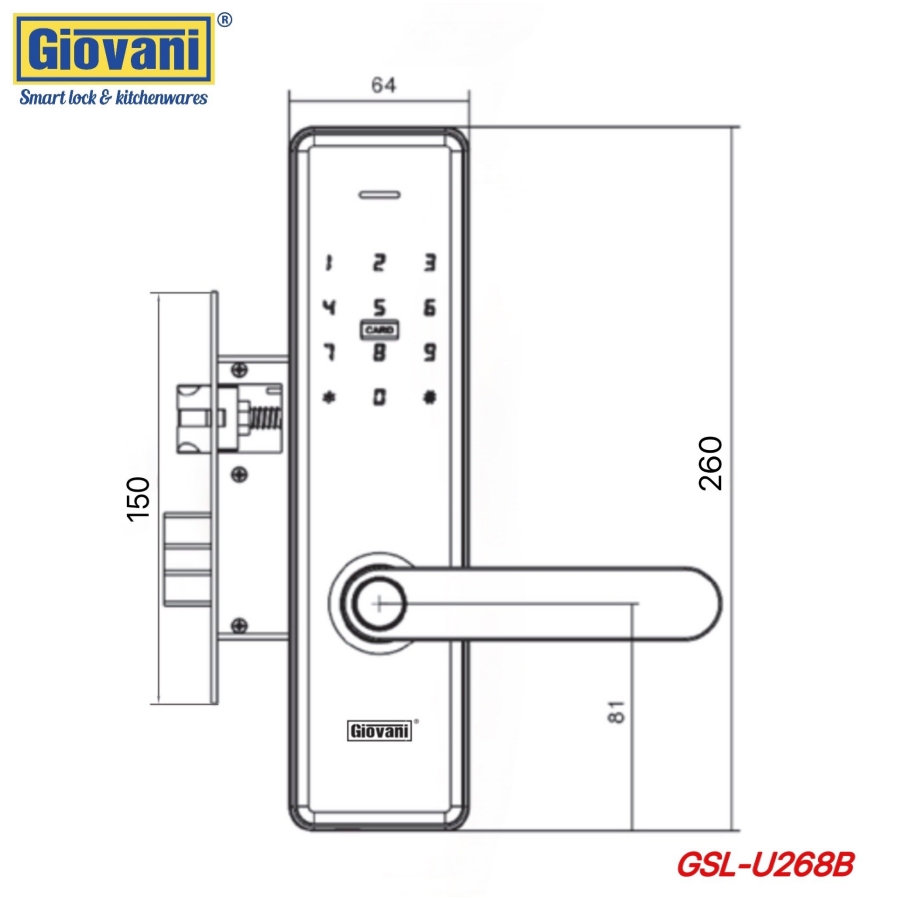 Sản phẩm Khóa vân tay Giovani GSL-U268B được thiết kế với các thông số kỹ thuật tối ưu, đảm bảo độ bền và khả năng hoạt động ổn định: