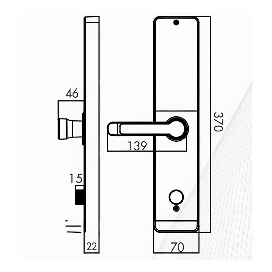 Kích thước thân khóa ngoài: R 70× C 370× D 22 mm.