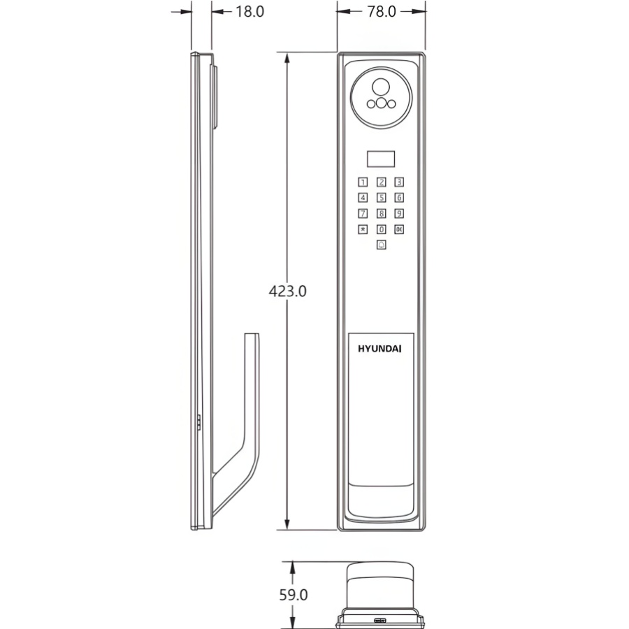 Bản vẽ Khoá cửa nhận diện khuôn mặt Hyundai HY-SLA911F
