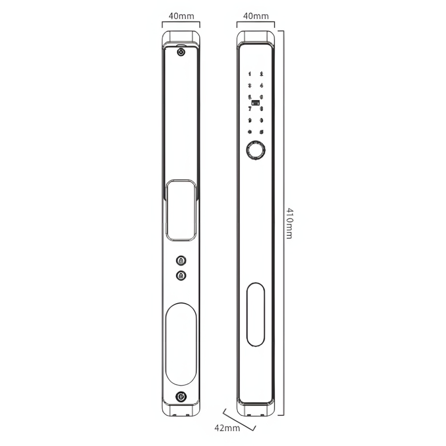 Kích thước thân khóa ngoài: R40 x C410 x D42 mm