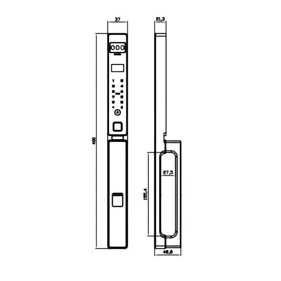 Kích thước thân khóa ngoài: R37 x C400 x D21.3 mm