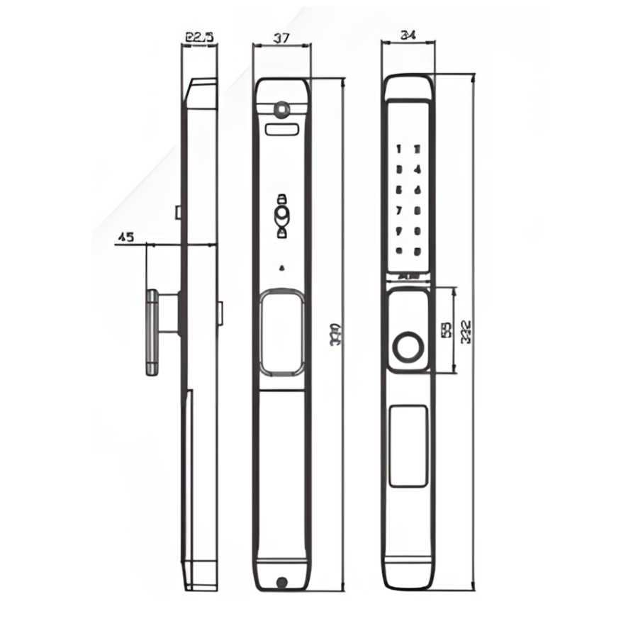 Bản vẽ kỹ thuật Khóa Vân Tay Kassler KL-599TN Champagne Gold App Remote