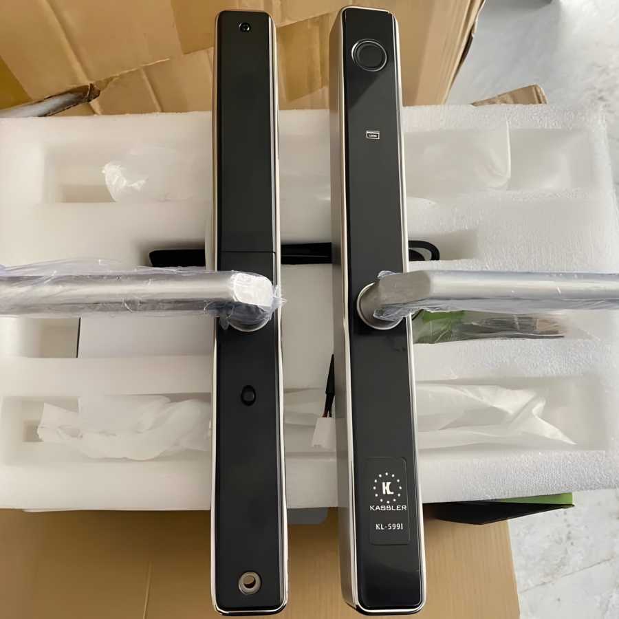Khóa điện tử Kassler KL-599I App: Mở bằng Vân tay/Mã số/Thẻ từ/App/Chìa cơ. Chuyên dụng cho cửa nhôm, thiết kế đa dạng tay nắm, chống nước.