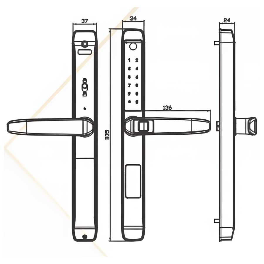 Bản vẽ kỹ thuật Khóa Vân Tay Kassler KL-599TD Black App TTlock Remote