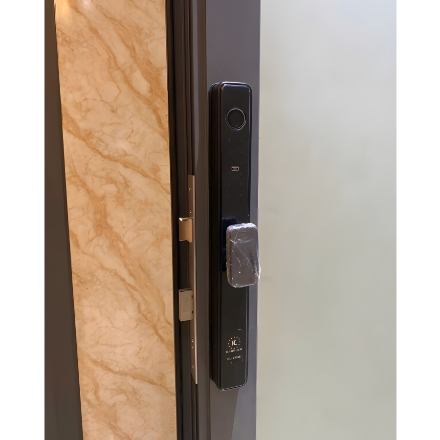 Khóa điện tử Kassler KL-599I App: Mở bằng Vân tay/Mã số/Thẻ từ/App/Chìa cơ. Chuyên dụng cho cửa nhôm, thiết kế đa dạng tay nắm, chống nước.