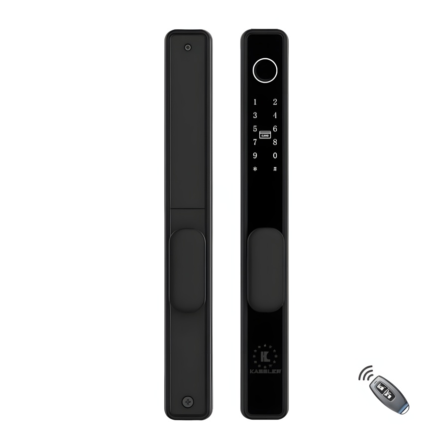 Khóa điện tử Kassler KL-599I App Remote: Mở bằng Remote/App/Vân tay/Mã số/Thẻ từ/Chìa cơ. Chuyên dụng cho cửa nhôm, chống nước tuyệt đối, tiện lợi.