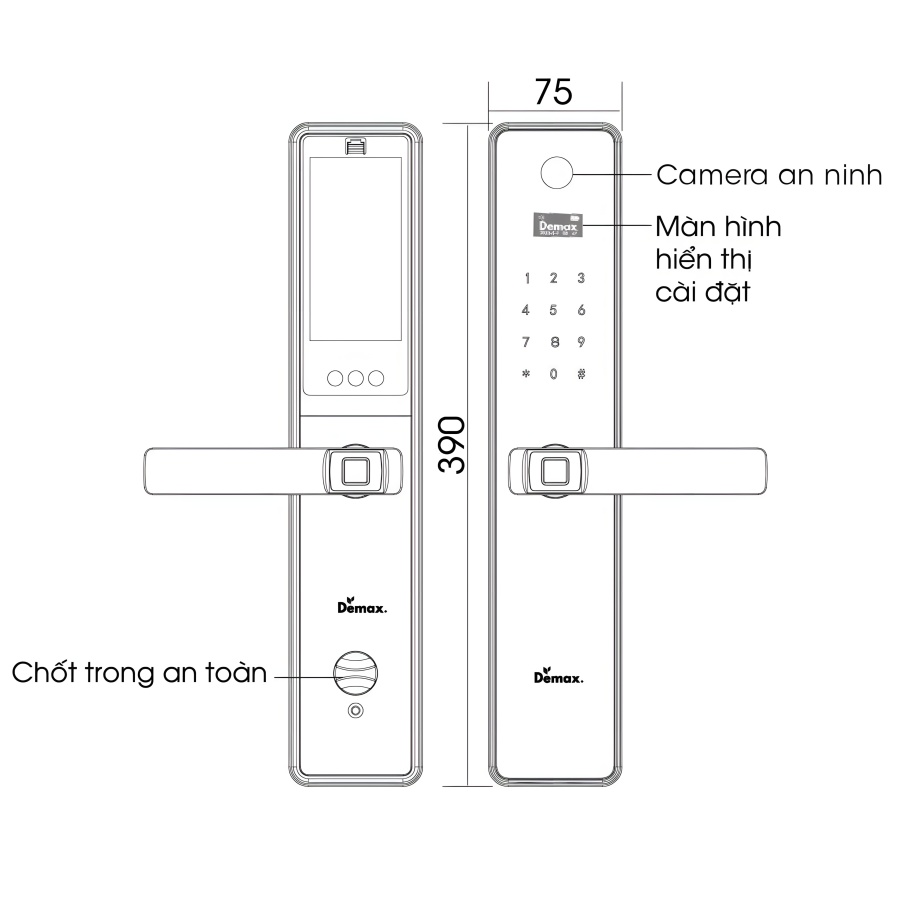 Bản vẽ Khoá cửa vân tay Demax EL-C626 AC App wifi