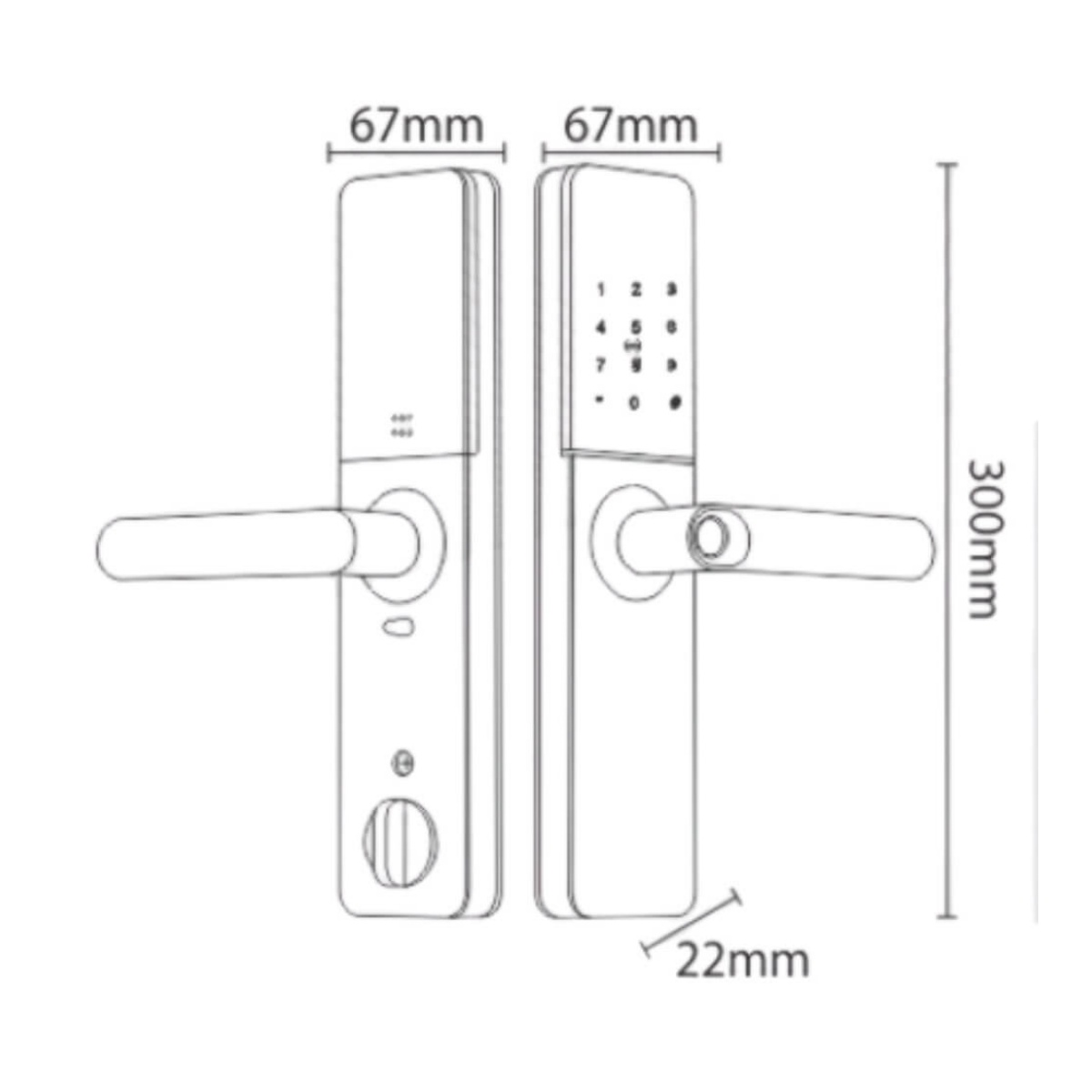 Kích thước thân khóa ngoài: R 67 x C 300 x D 22 mm