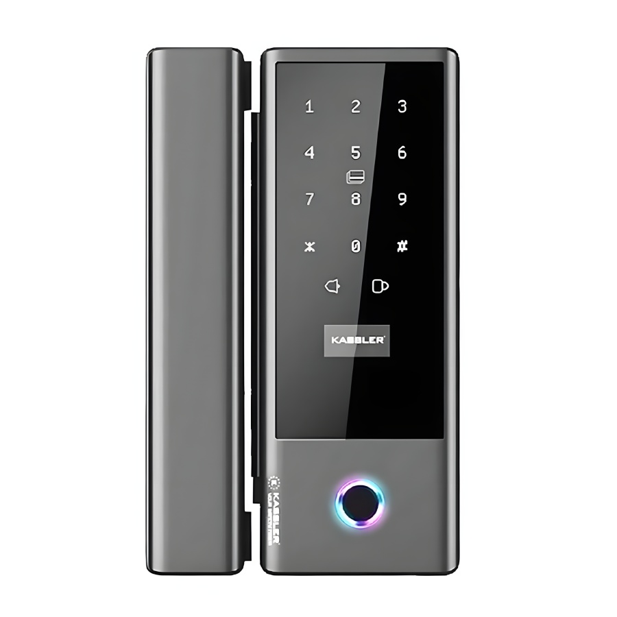 Khóa cửa kính Kassler KL-589-APP - chuyên dụng cho cửa kính cường lực. Mở khóa bằng vân tay, mật khẩu, thẻ từ, App. Thiết kế sang trọng, lắp đặt dễ dàng.