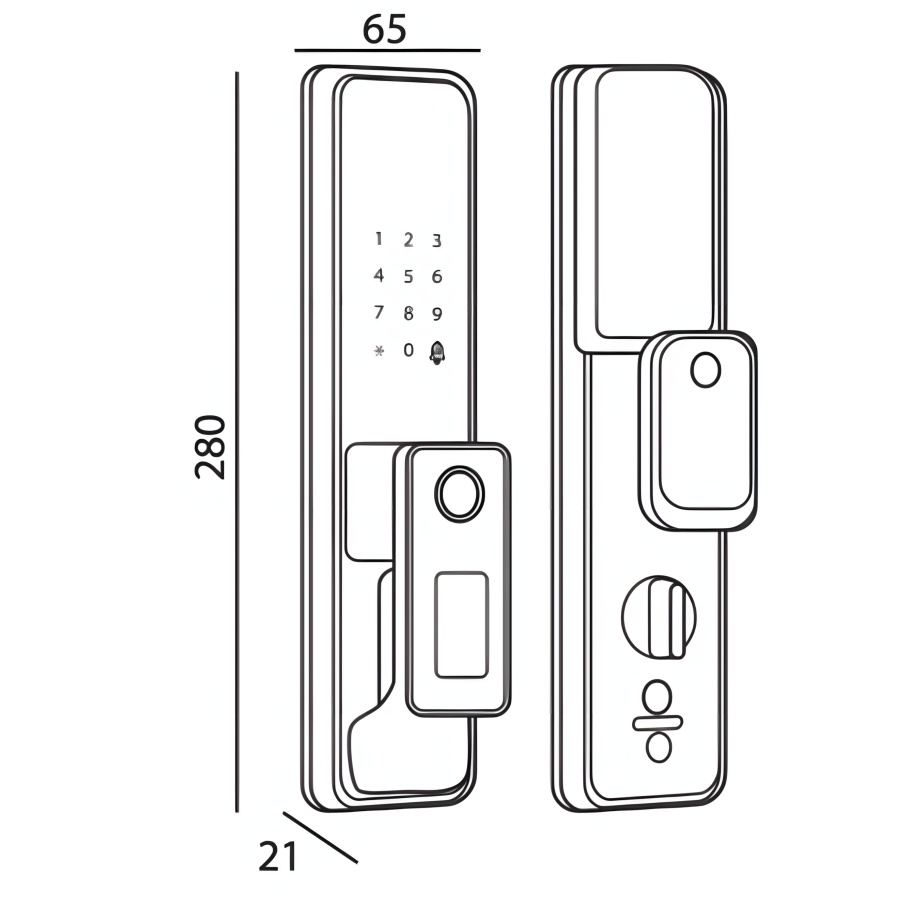 Tính năng an ninh: Mã số ảo (32 ký tự), Chìa cơ chống sao chép, Cảnh báo phá khóa, Cảnh báo đột nhập, Kết nối WiFi qua App Tuya.