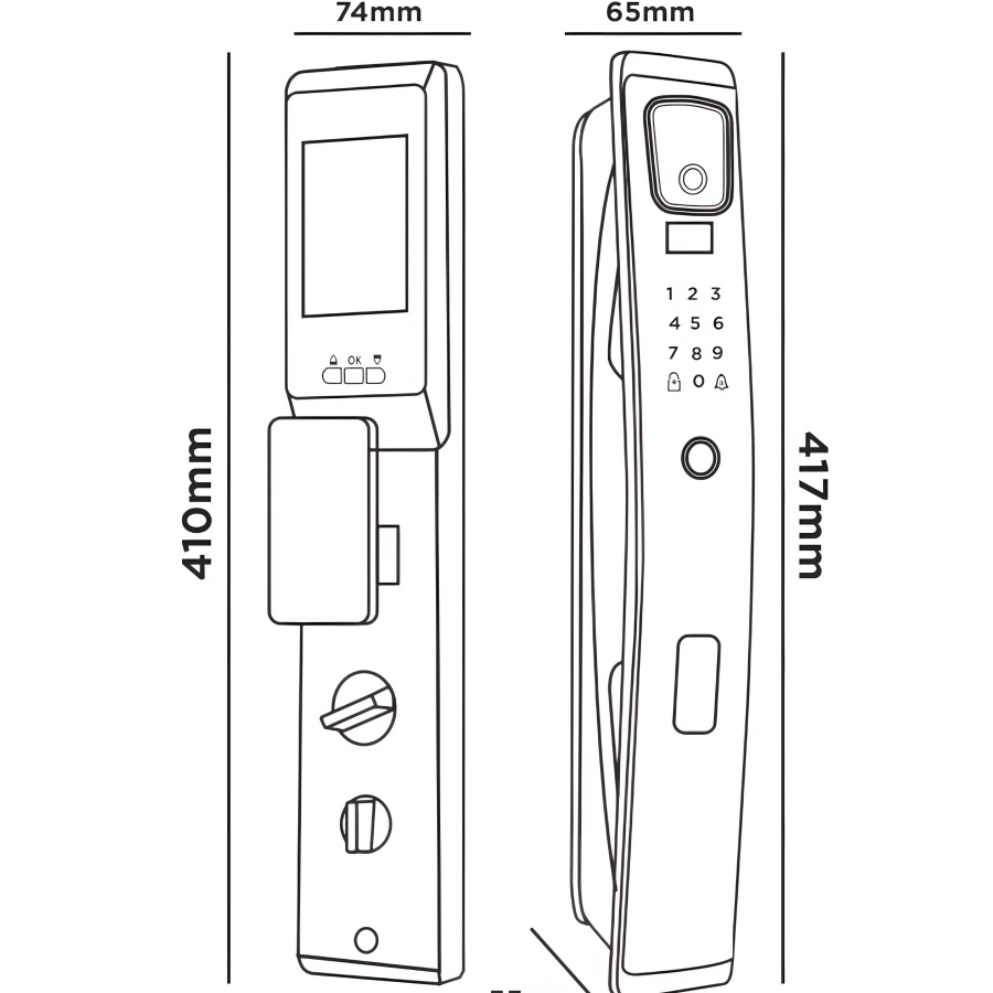 Phương thức mở khóa: 6 chức năng (Vân tay, Mật mã, Thẻ từ, Chìa cơ, App Wifi, Camera chuông)