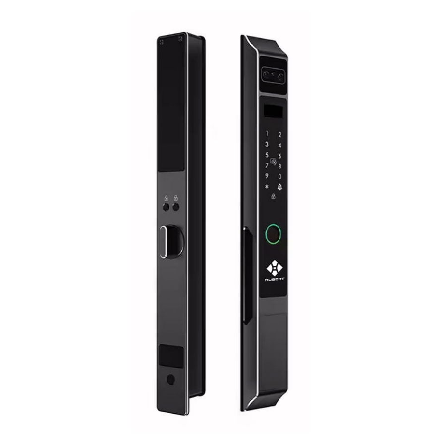 Khóa điện tử Hubert Cửa Nhôm HB CN86 Black chính hãng, mở khóa 5 trong 1 (vân tay, mật mã, thẻ từ, chìa cơ, App). Thiết kế sang trọng, bền bỉ.