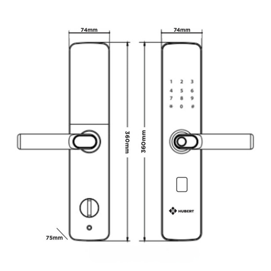 Khóa điện tử Hubert HB CN77 chính hãng cho cửa nhôm: an toàn tuyệt đối, vân tay, thẻ từ, mã số. Thiết kế sang trọng, dễ lắp đặt.