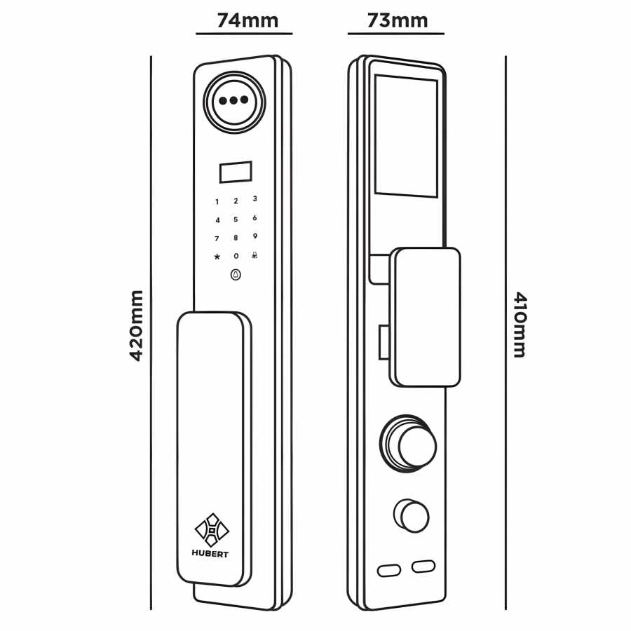 Vận hành: Nhận diện Khuôn mặt 3D, Vân tay, Mã số, Thẻ từ, Chìa cơ, App Wifi.